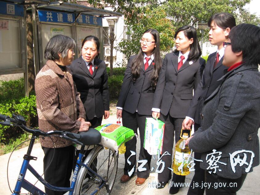 吴小红(左二)跟同事们一起参与“检察机关每月一关爱活动——走进社区”活动