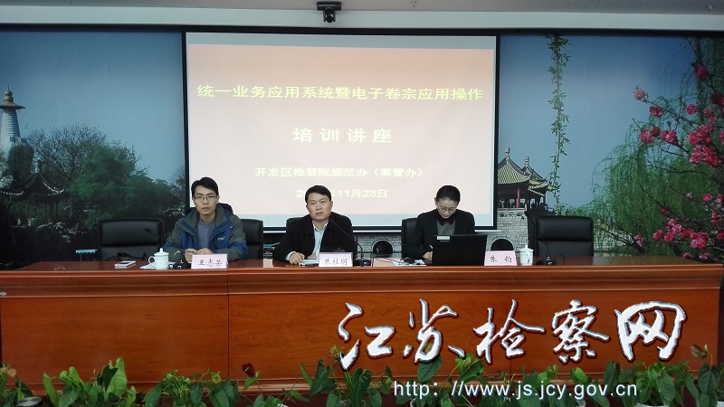 电子卷宗系统让案管工作更科学、规范,王志荣(左一)和同事们开讲座作辅导推动系统广泛运用