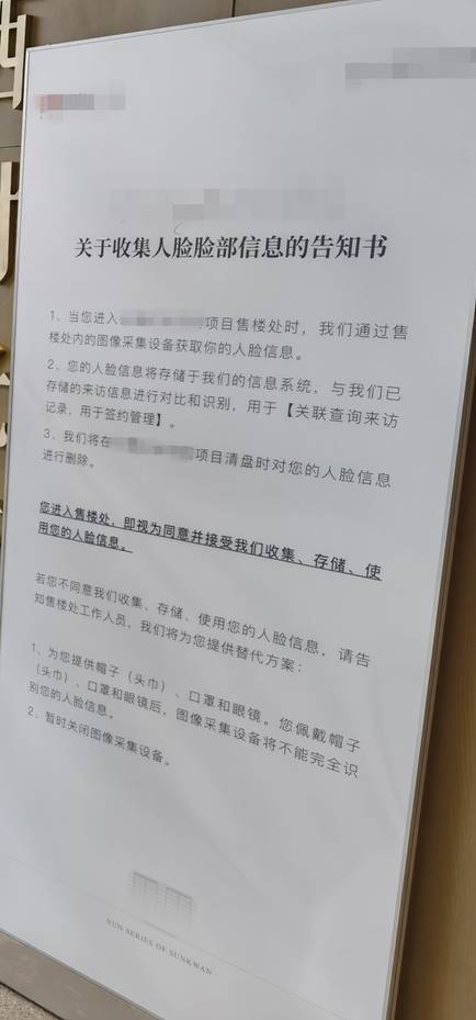售楼处内公示的“关于收集人脸脸部信息的告知书”