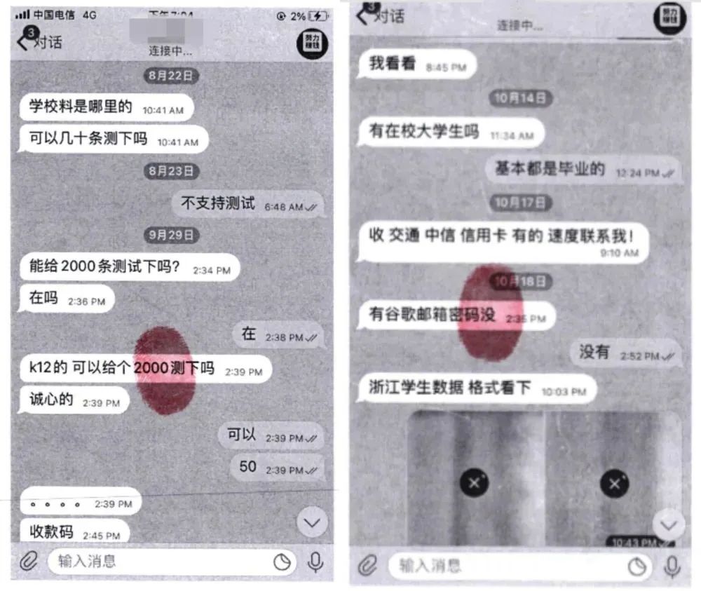 出售公民个人信息聊天记录