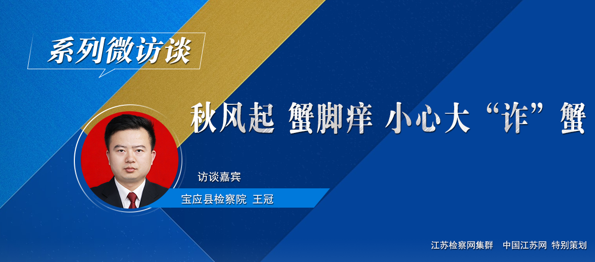 王冠:螃蟹进入销售旺季,经营水产品的商家要提高警惕,对于大额订单尽量做到现卖现结,谨防上当受骗。广大消费者购买螃蟹也要注意辨别真伪,不要被网络媒体一些虚假的螃蟹推销信息所骗。