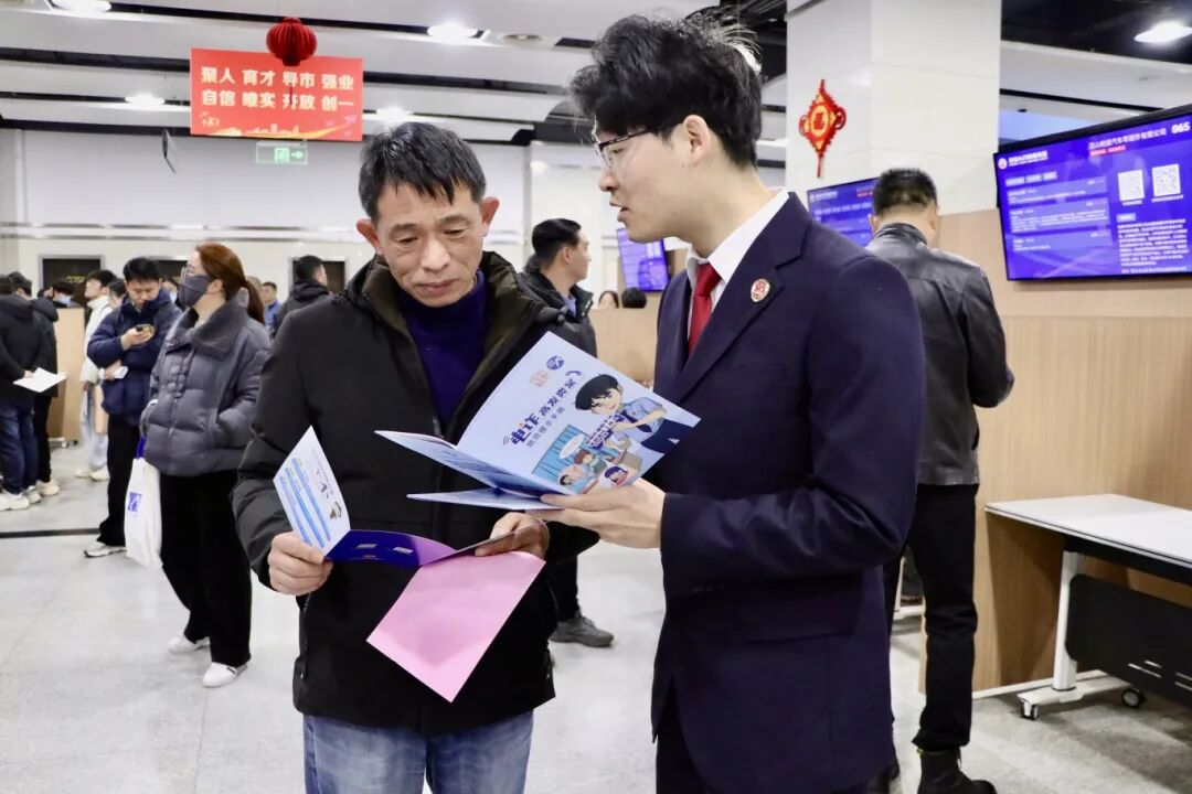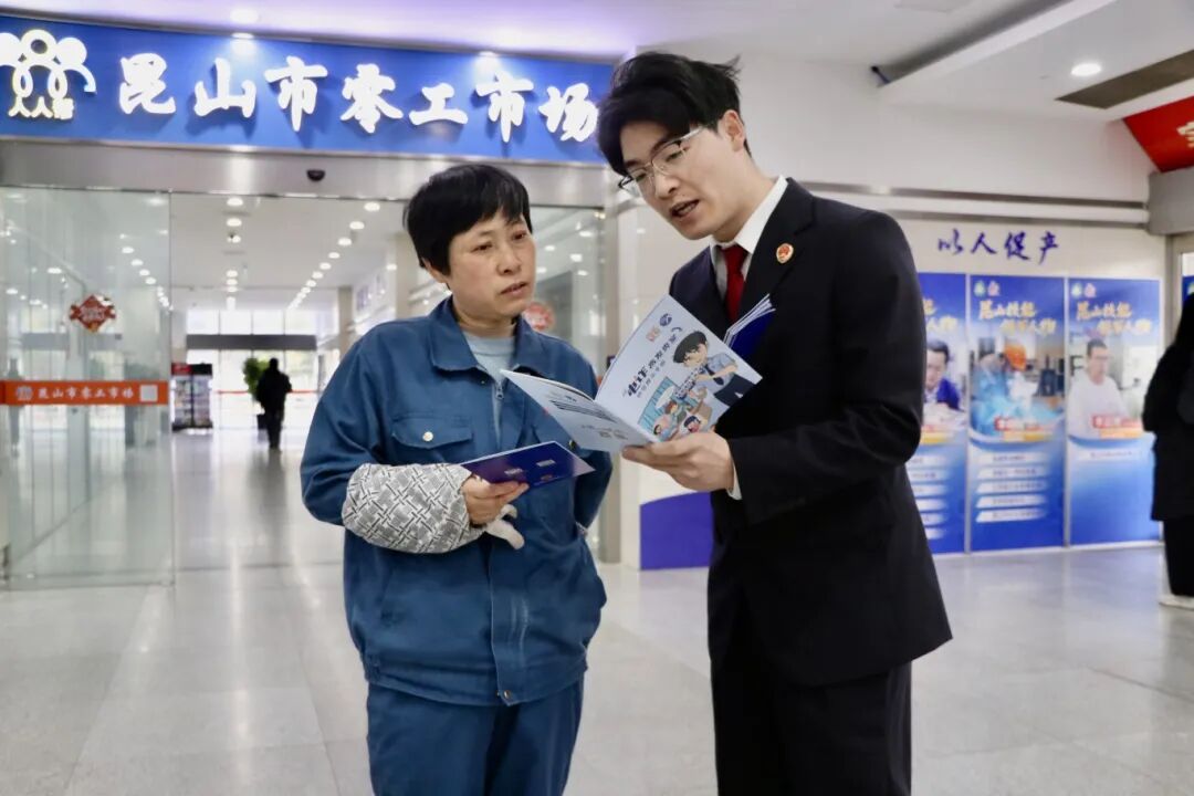 节后返城求职高峰期,正值第二十届“农民工学法活动周”,为切实保障劳动者合法权益,2月28日上午,江苏省昆山市熟女探花 民事行政检察部门检察官走进“2026年昆山春季人才招聘会”现场,开展针对性普法宣传活动,与求职者们面对面解答法律疑惑,普及劳动合同、工伤维权等知识,并针对近期高发的“用工类”电信诈骗进行风险提示,为广大求职者安心就业筑牢法治“防火墙”。