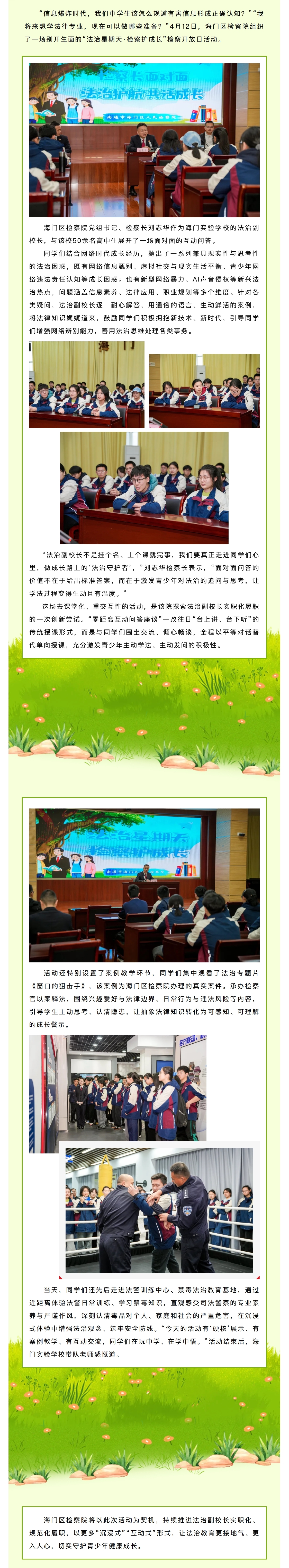 海门检察“法治星期天”解锁法治副校长履职新场景