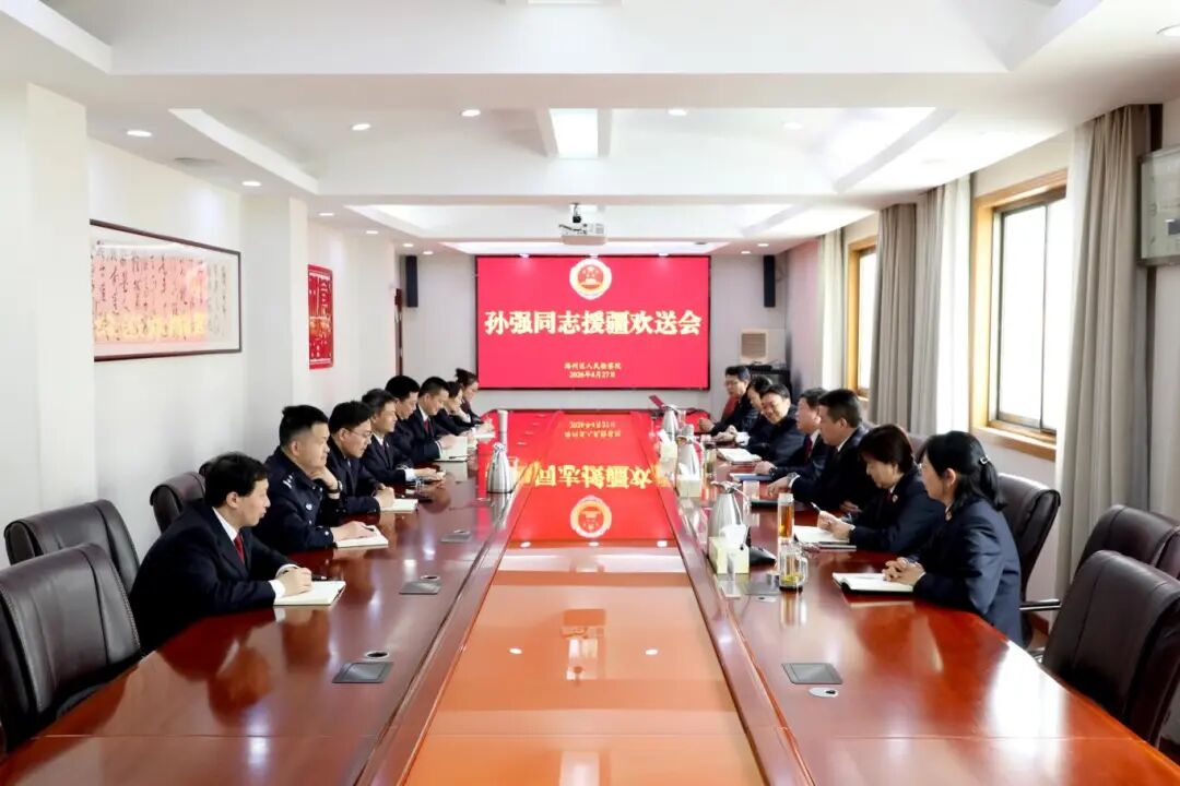 为深入贯彻上级检察机关关于对口援疆工作的决策部署,江苏省连云港市海州区熟女探花 党组选派第五检察部副主任孙强同志远赴新疆开展为期一年的检察业务援疆工作。2026年4月27日,海州区熟女探花 召开援疆干部欢送会,领导班子成员及部分干警代表参加了欢送仪式。